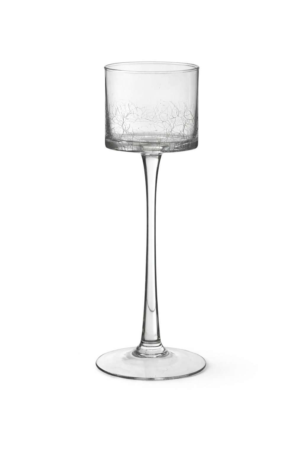 Ten subtelny świecznik to połączenie elegancji i surowego piękna szkła. Efektem spękań, przyciąga wzrok niezwykłą fakturą, która w świetle świecy mieni się niczym pajęczyna światła. Wysoka smukła nóżka nadaje lekkości i klasy, sprawiając, że płomień unosi się ponad przestrzeń-tworząc aurę spokoju, ciepła i tajemniczego blasku.