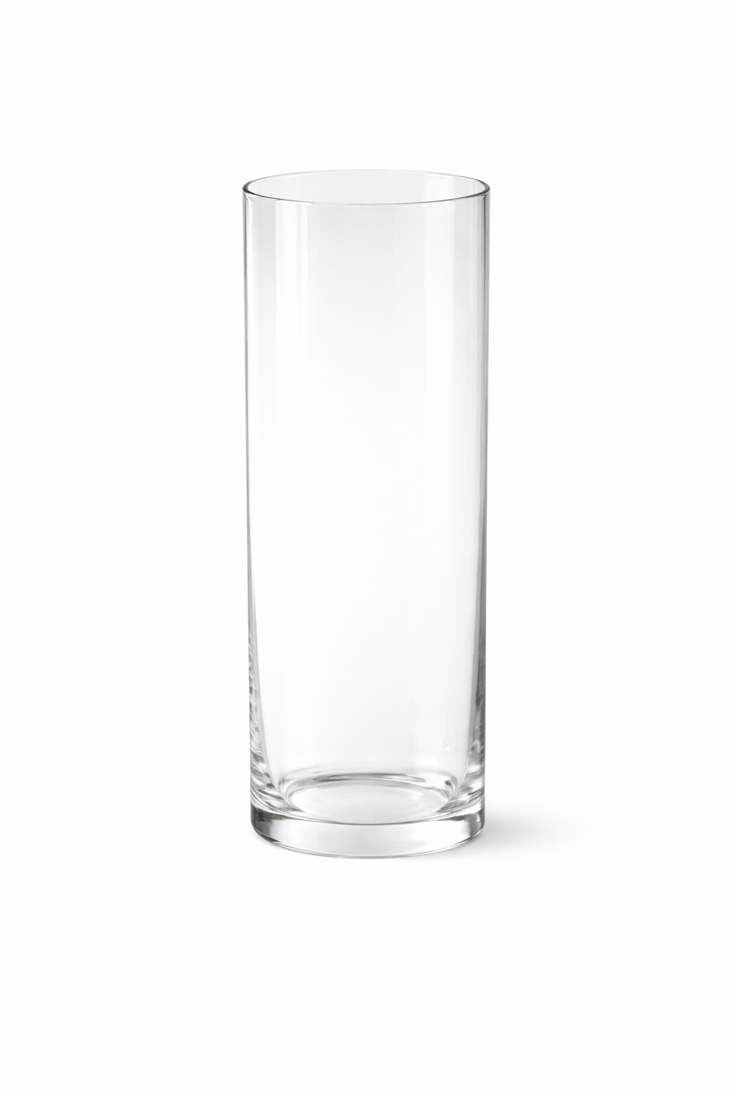 Smukły, cylindryczny wazon wykonany z czystego, transparentnego szkła. Jego prosta forma podkreśla naturalne piękno kwiatów, gałęzi lub pojedynczych kompozycji, nie odciągając od nich uwagi.